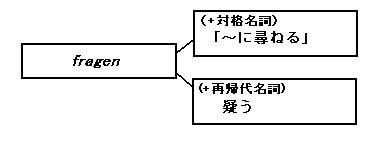 例えば動詞fragenは、対格目的語を支配するパターンと再帰代名詞を支配するパターンの二つの下位クラスに属する動詞である。