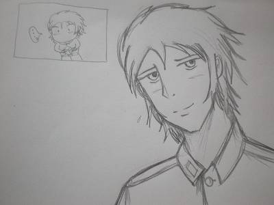 "...Bernd," "Ja?" "Du bist...ah, Ich weiss nicht, wie ich es sagen soll, aber..." "So was?" "Du bist..., du bist immer nett zu mir. Ich bin froh...," "...Und was?" "...Vielen Dank, Bernd. Ich..." "―Ich meine immer, dass du mein engre Freund bist." 「…ベルント」 「おお?」 「お前は…え、っと、なんて言っていいかわからないんだが、でも…」 「だから、何?」 「お前は…、お前は、いつも俺にやさしくしてくれる。うれしい、し…」 「…それで?」 「…あ、ありがとう、ベルント。俺は…」 「―俺は、いつも、お前のことを…親友だって、思ってる」 |