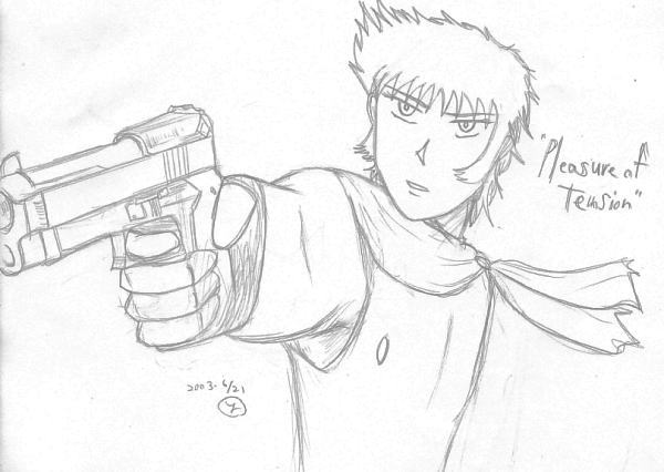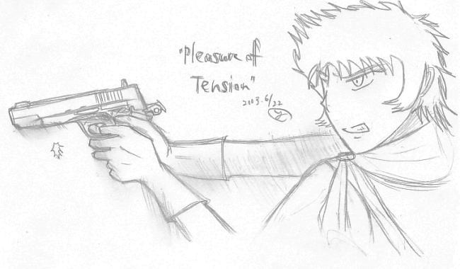 "Pleasure of Tension"シリーズでは、拳銃を持たせたキャラをかいてます。