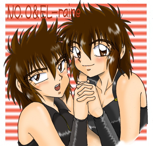 <綿菓子様に描いてもらったNo.0さんとエルレーンさん> 綿菓子様に相互リンク記念にいただいた二人だ! カワイコちゃんのシンメトリーだ!目にやさしいネ! No.0「…くそッ、なんで俺がこんなことを しなきゃならねえんだ?!」 エルレーン「えー、どーして? …私と『シャシン』とるの、いや…?」 No.0「No.39ッ、ベタベタ俺にひっつくんじゃねえよ! ああもうッ、なんでこんな…?!」 エルレーン「んもう、No.0…かめら、あっちだよぉ。 あっち向かなきゃ!」 …ぱしゃ☆ エルレーン「わーい!リョウたちに見せるのー!」 No.0「………。 (おっさん<暗黒大将軍>に見せようかどうか No.0はちょっと迷っているようだ)」 |